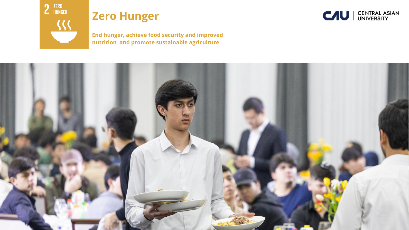 CAU’s Commitment to Poverty Alleviation Central Asian University is committed to reducing poverty through education, research, and community initiatives, in alignment with the United Nations Sustainable Development Goal 1 - No Poverty. The University recognizes poverty as a multidimensional issue involving limited access to education, healthcare, and opportunities. CAU promotes social responsibility across its academic and community programs, empowering students and staff to contribute toward inclusive growth and sustainable development.