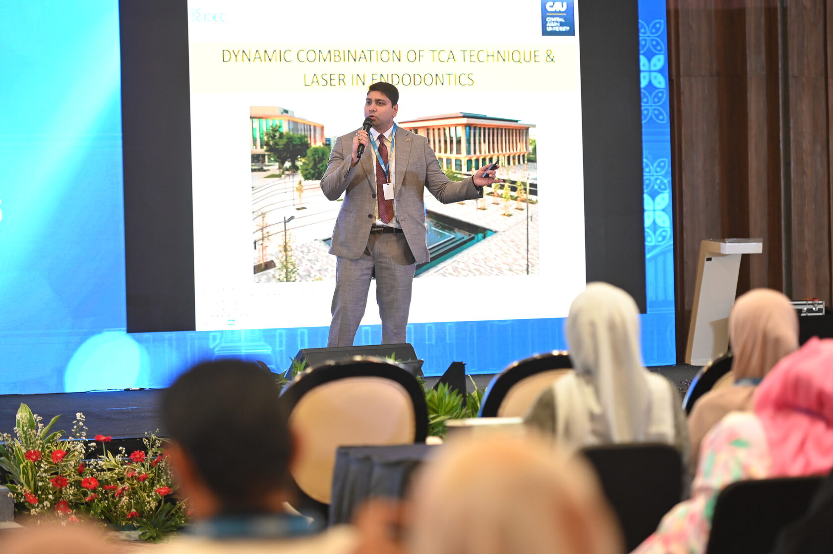 During the conference, Professor Dr. Niladri Maiti, Dean of the CAU School of Dentistry, delivered a keynote lecture focused on the innovative Tactile Control Activation (TCA) technique used for managing challenging root canal cases. His presentation explored how this newly approved method, combined with advanced laser technologies, significantly enhances the success rate of treating extremely curved canals. The session quickly became one of the highlights of the congress.