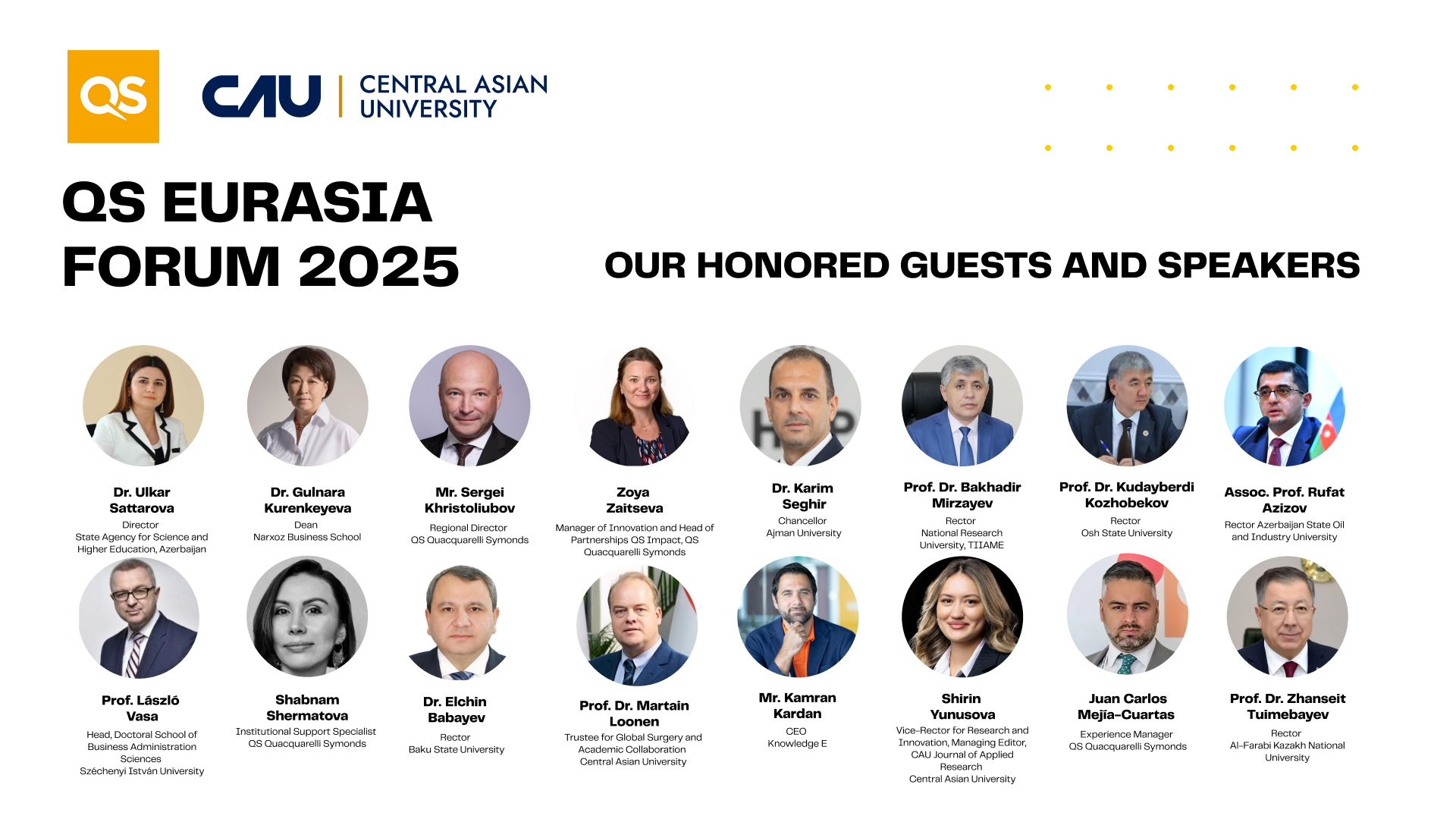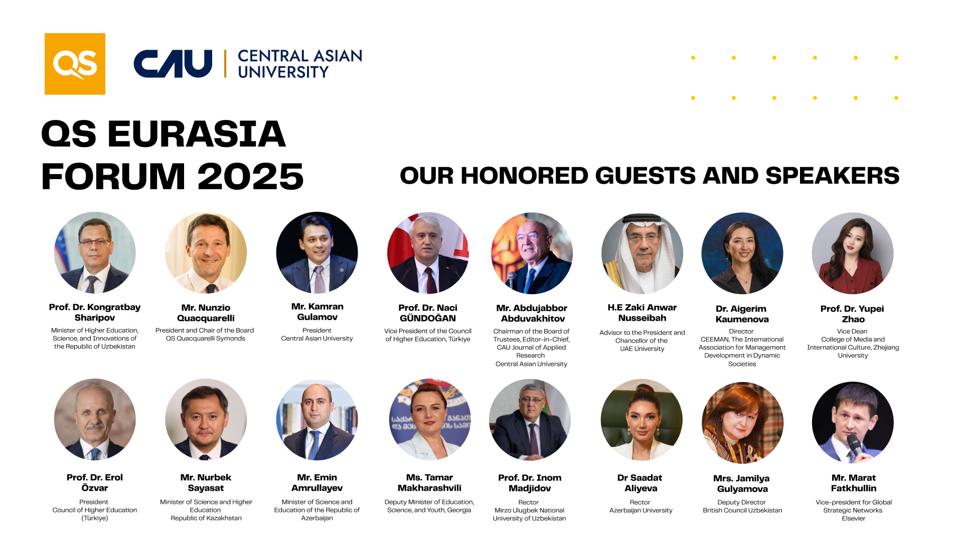 The QS Eurasia Forum 2025 will bring together influential leaders from universities, government institutions, and international organizations. Among the distinguished guests: