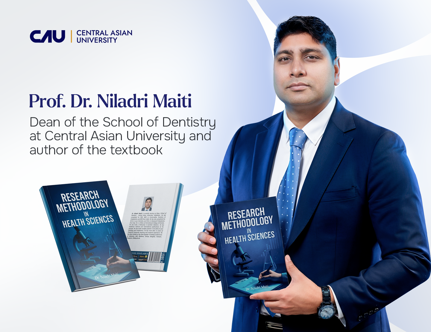 Central Asian University announces the publication of a new textbook authored by Prof. Dr. Niladri Maiti, Dean of the School of Dentistry, titled “Research Methodology in Health Sciences.”