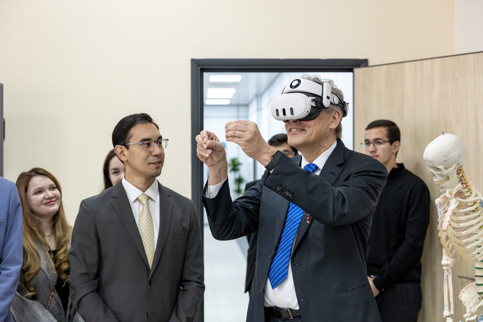 During his visit, Professor Moser toured Central Asian University, exploring the campus, educational laboratories, and the modern simulation center, where students practice clinical skills in conditions closely approximating real-life medical scenarios. He also engaged with students and faculty, discussing current directions in neuroscience and medical education.